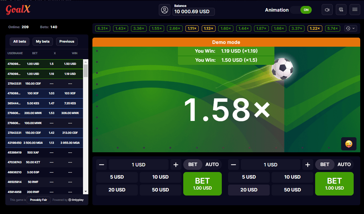 محدودهی شرطبندی در GoalX بسیار گسترده است و از مبالغ کم برای بازیکنان تازهکار یا با بودجهی محدود تا مبالغ بالا برای بازیکنان حرفهای را شامل میشود. این تنوع، دسترسی بازی را برای همه اقشار بازیکنان فراهم میکند. قابلیت چند شرطی (Multi-bet) نیز به بازیکنان اجازه میدهد تا چندین شرط را به طور همزمان در طول یک دور یا در دورهای مختلف ثبت کنند، که این امر استراتژیهای پیچیدهتر را ممکن میسازد.